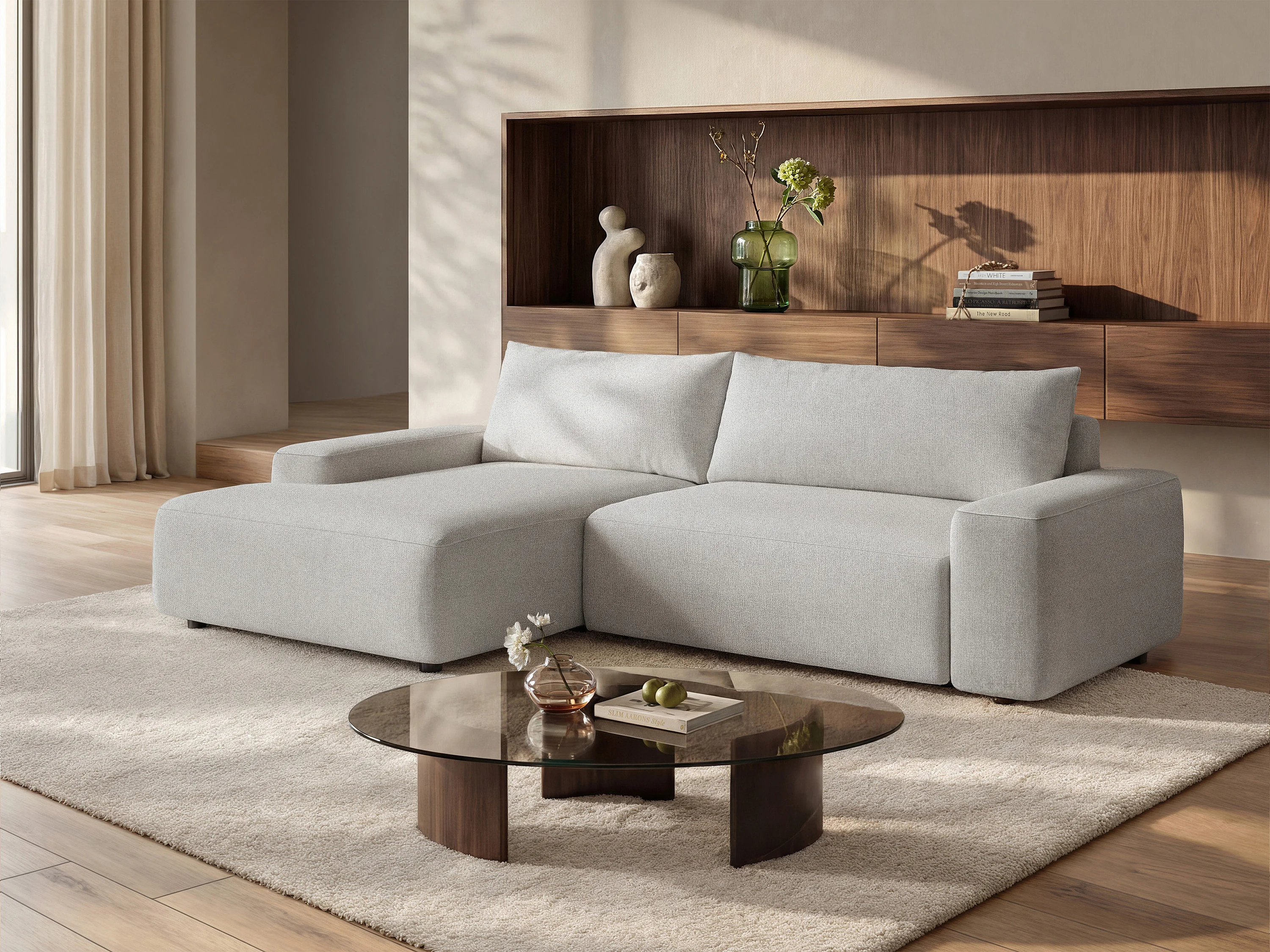 Left-hand convertible corner sofa in light grey textured fabric DAVISO