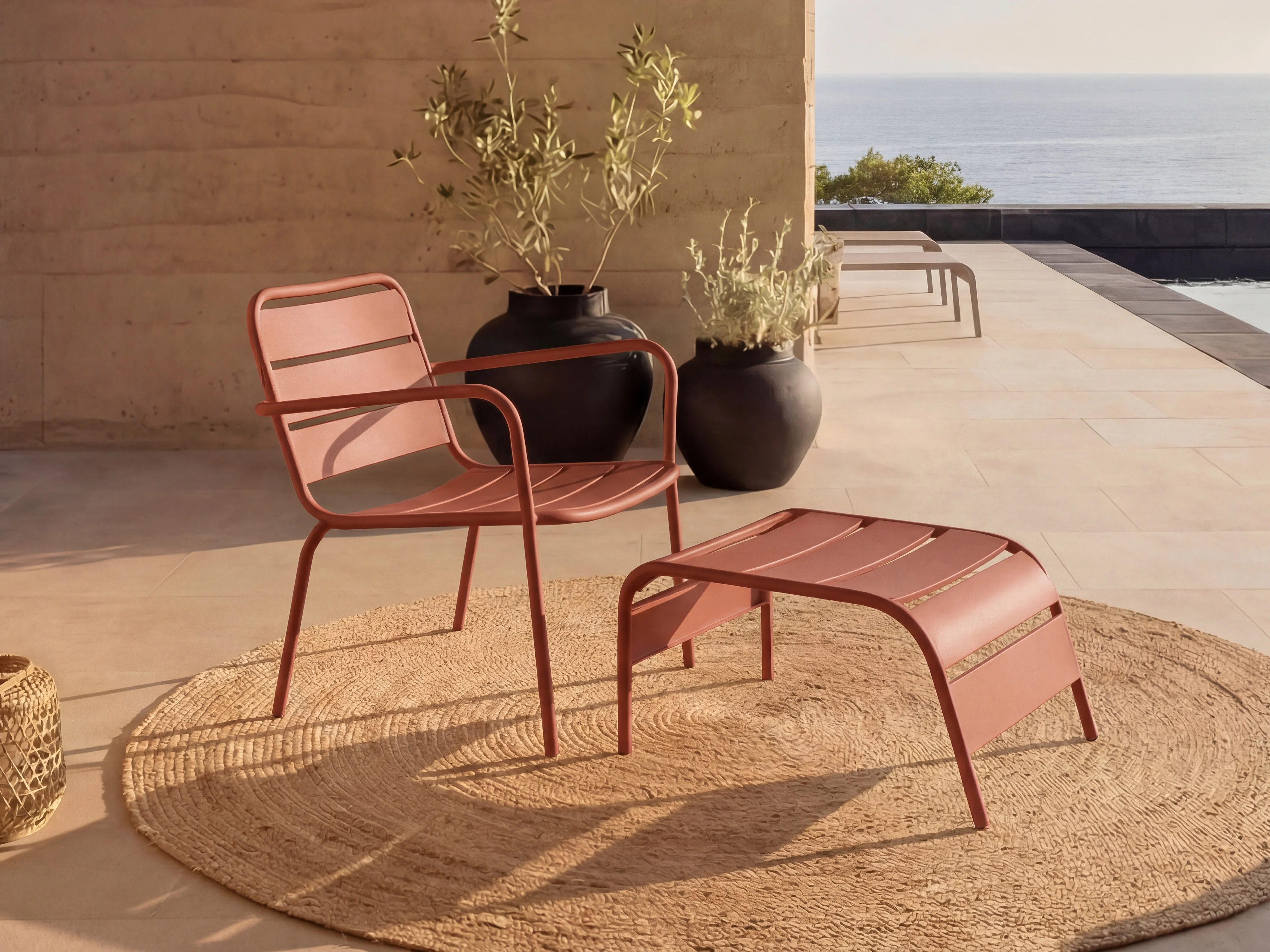 Stackable low garden armchair + footrest in metal - Terracotta - MIRMANDE by MYLIA