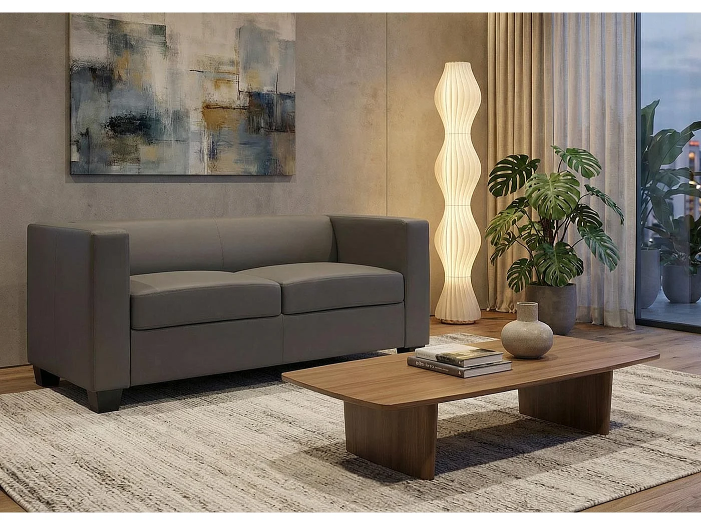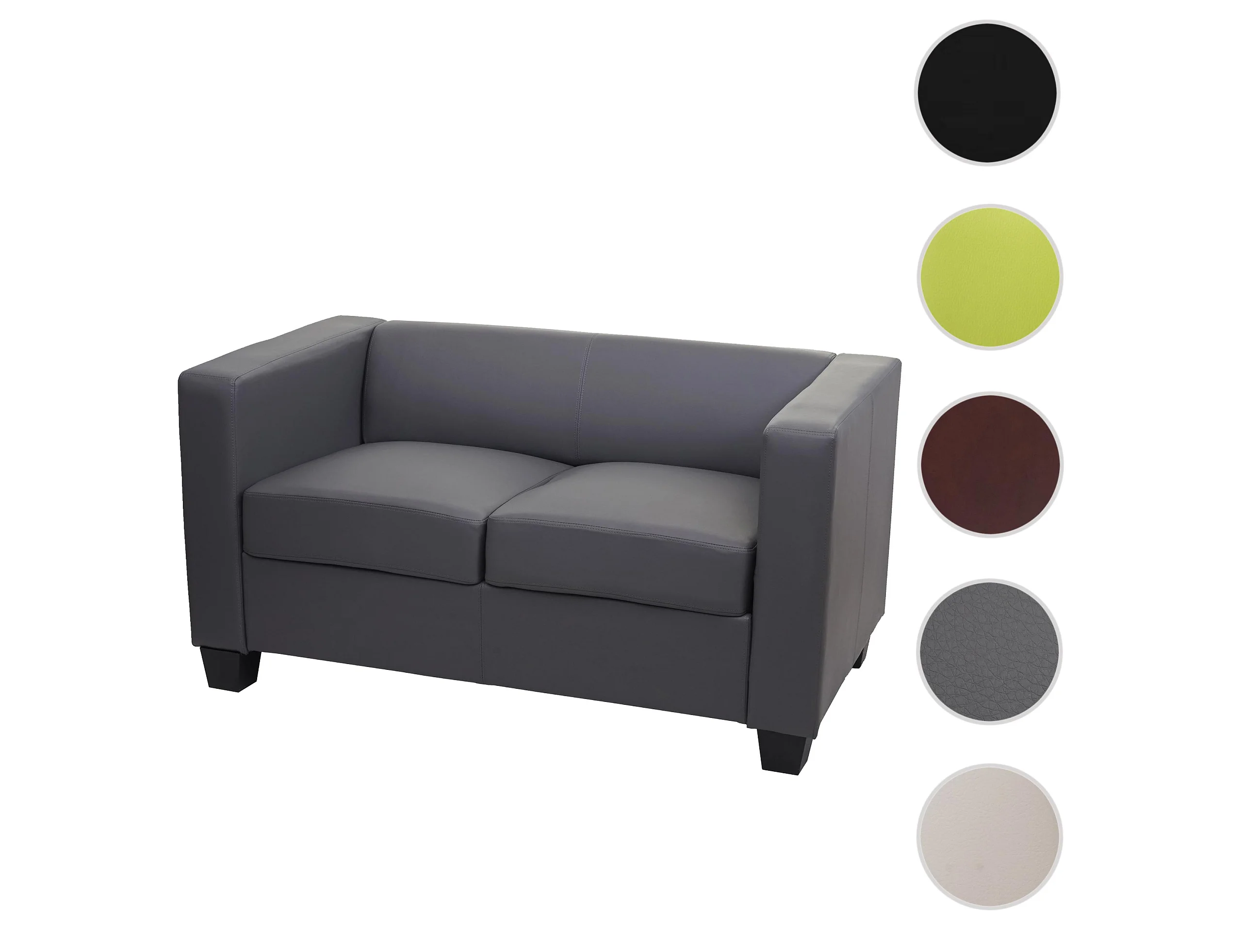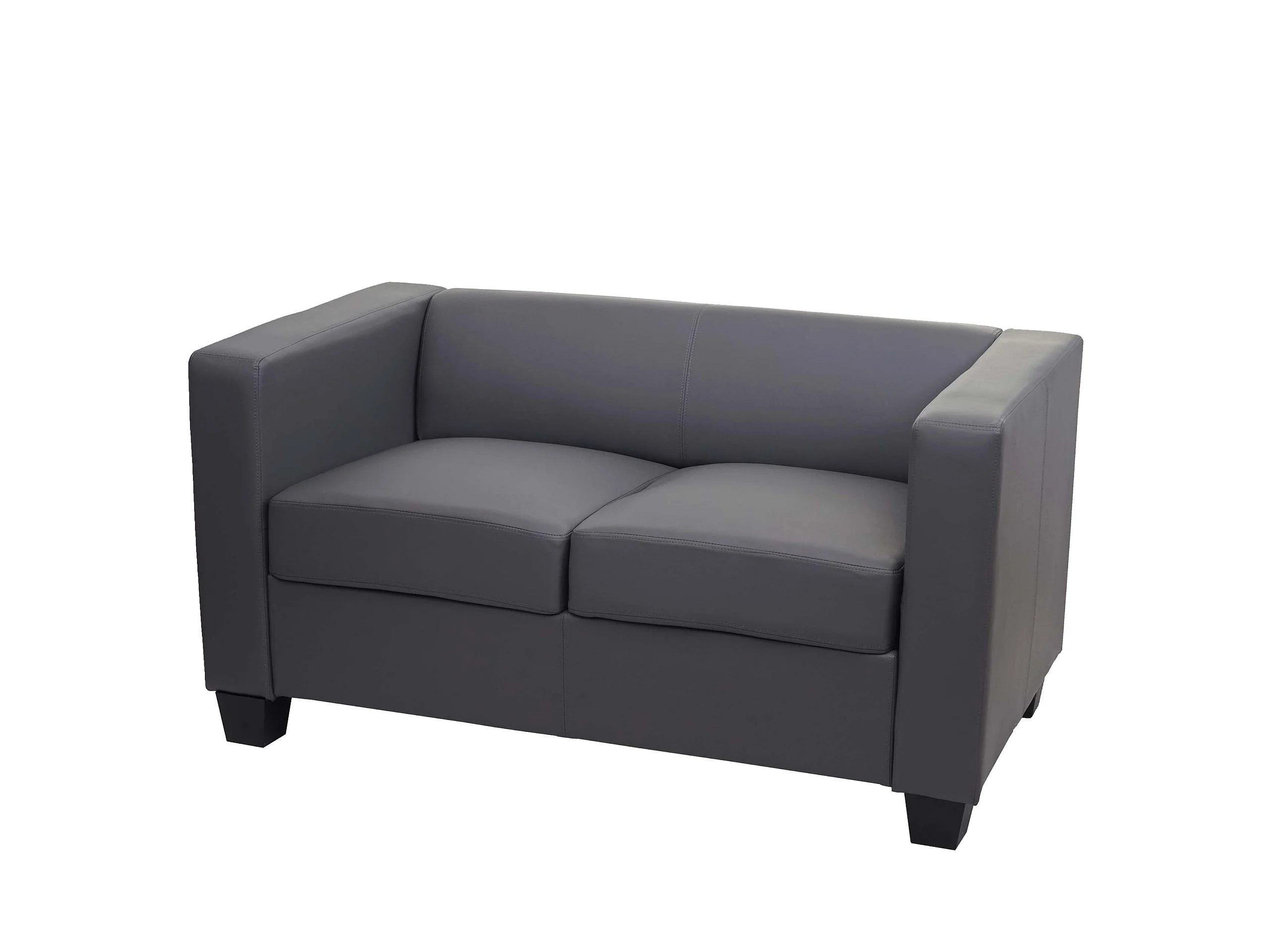 Small 2-seater sofa, faux leather, dark grey